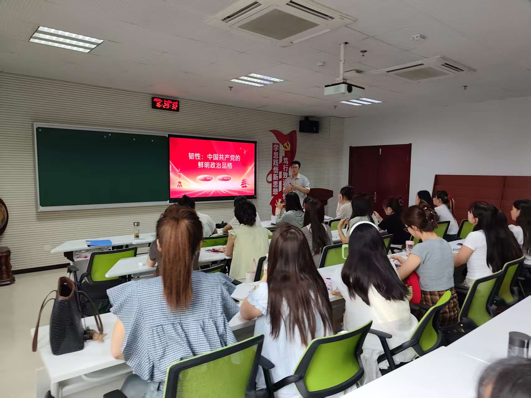在专题党课环节,第一讲由冯晓霞老师以《延安作风——从延安时期党的理论联系实际说》为题,深入阐释党的作风形成历史条件与核心内涵,强调“实事求是”重要性及端正入党动机的必要性,为学员筑牢信仰根基。培训第二讲由王云鹏老师以“文化自信与文化自强”为主题,深刻剖析中国传统文化博大精深,系统讲解建设社会主义文化强国路径,增强学员文化自信。培训第三讲由白向龙老师聚焦“韧性:中国共产党最鲜明的政治品格”,通过历史案例阐释党的韧性内涵,激励学员传承优良品格、勇担时代使命。