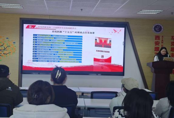 为深入学习贯彻党的二十届四中全会精神,筑牢支部成员的思想根基,11月28日,思想政治教育研究生党支部在911报告厅开展“深学全会精神,淬炼理论初心——学习贯彻党的二十届四中全会精神”主题党日活动,本次活动由党支部书记李妮同志主持。