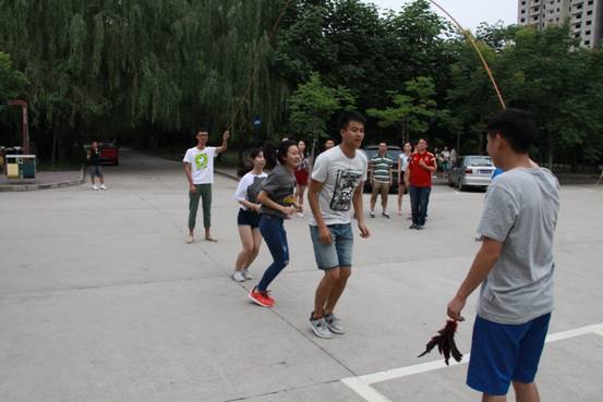 此次活动上,共有两个活动项目:接龙三连赛(含单人跳绳、毽子及三人跳大绳)和羽毛球攻擂赛。尽管天气闷热,但参与的员工依然兴致盎然,争分夺秒地练习比赛项目,认真进行热身等赛前准备。在正式比赛前,先进行了一场激烈的友谊拔河赛,由研一研二两个年级各派出五男五女进行对抗,为随后进行的正式比赛奠定了趣味性的基调。在接龙三连赛上,三人互相配合,体现了训练出来的默契,大家玩得不亦乐乎。与三连赛相比,羽毛球攻擂赛显得更为激烈,参赛队员各个精神抖擞,观众不断地加油鼓励,场面十分热闹。赛后,还为两项活动的前三甲颁发了奖品,以此鼓励同学们为此次活动付出的努力。整个运动会充满趣味性,又充满了挑战性,工作人员追踪记录着比赛进程,拍下了各个精彩的瞬间。