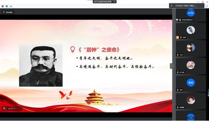 孙悦同学以李大钊先生在《晨钟报》中撰写的《“晨钟”之使命》一文为切入点,深刻论述了奋斗的价值和意义。她认为,生逢盛世,我们更应该不忘感恩,不忘奋进,坚定理想信念,在新时代祖国的大好蓝图上挥洒我们青春的汗水,播种希望的种子,做新时代奋斗好青年。