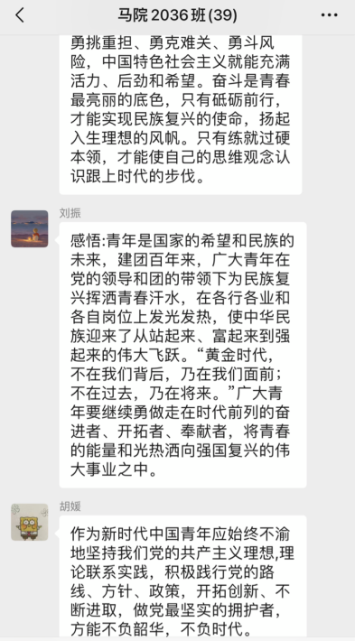 5月30日,suncitygroup太阳成集团研2036班团支部线上观看学习共青团中央“青春心向党,百年再启航——学习习近平总书记在庆祝中国共产主义青年团成立100周年大会上的重要讲话精神主题云团课”,并一起讨论了自己的学习感悟。