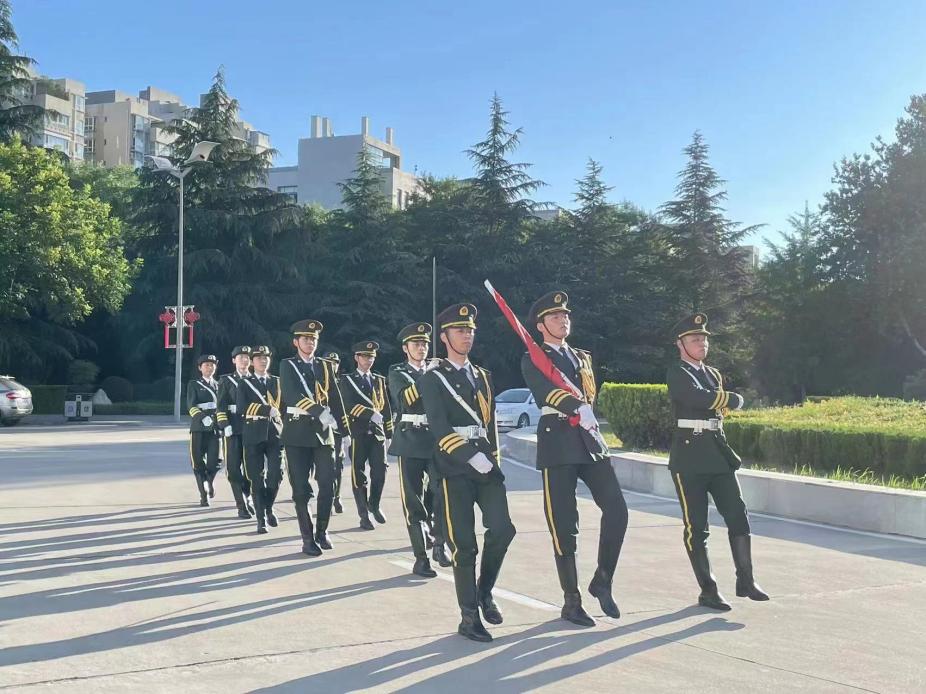 清晨7点升旗仪式正式开始。随着一声“正步走!”的口令,在全体师生深情的注目下,国旗护卫队迈着铿锵有力的步伐,阔步走向升旗台。