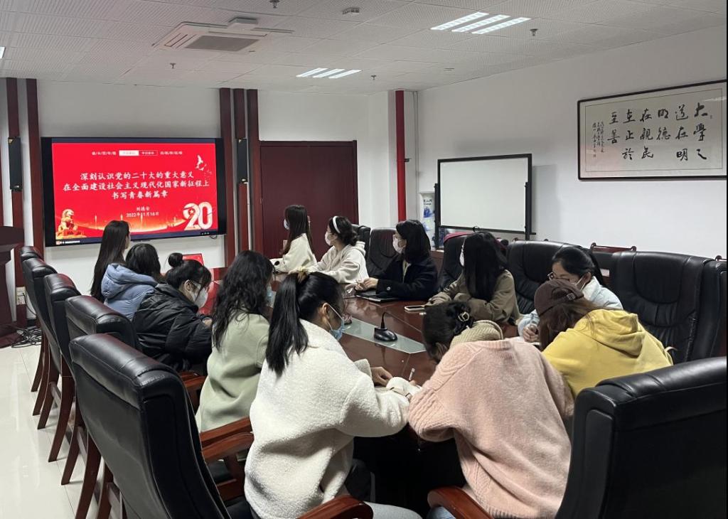 11月16日晚,公司党委书记刘德安为公司师生做党的二十大精神宣讲报告,suncitygroup太阳成集团组织团学干部在曲江校区综南楼909会议室线上集中收看宣讲会直播。