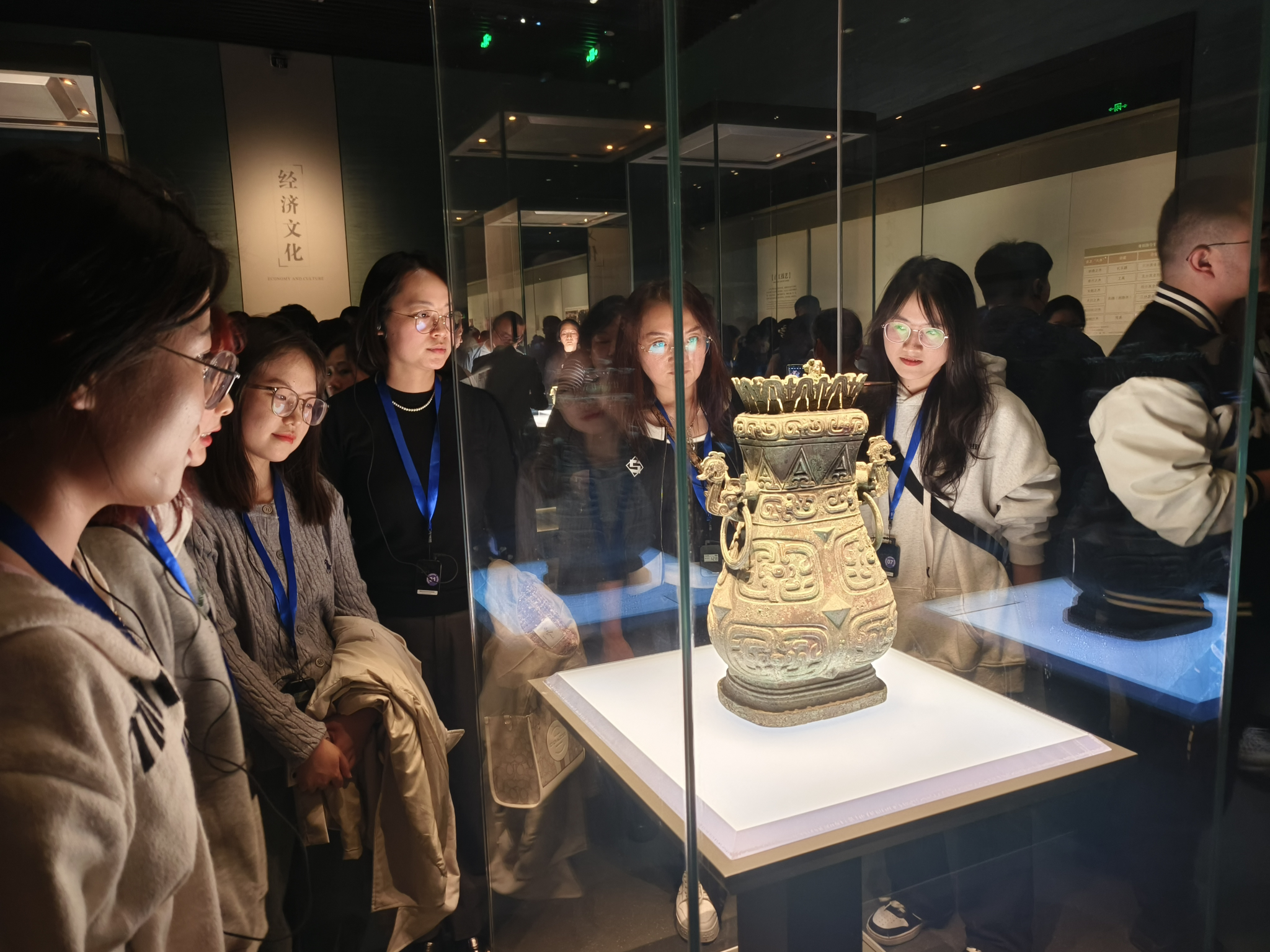 陕西作为十三朝古都,遍布在全省的23453处古遗迹是人类发展历史不可湮灭的文明印记,14367处古墓葬是中华文明不可割断的文明根脉,6702处矗立在三秦大地上的古建筑是中华文明不可颓堕的文明标识,1068处石窟寺、石刻类文物是不可剥蚀的文明宝库,3213处近现代重要史迹特别是革命文物是红色文化的鲜明印记。陕西历史博物馆作为展示陕西发展历史和对外交流的重要窗口,在传承中华文明方面发挥了独特作用。为了加深对陕西乃至中华五千年悠久历史的了解,10月20日,suncitygroup太阳成集团研究生会赴陕西历史博物馆参观研学。