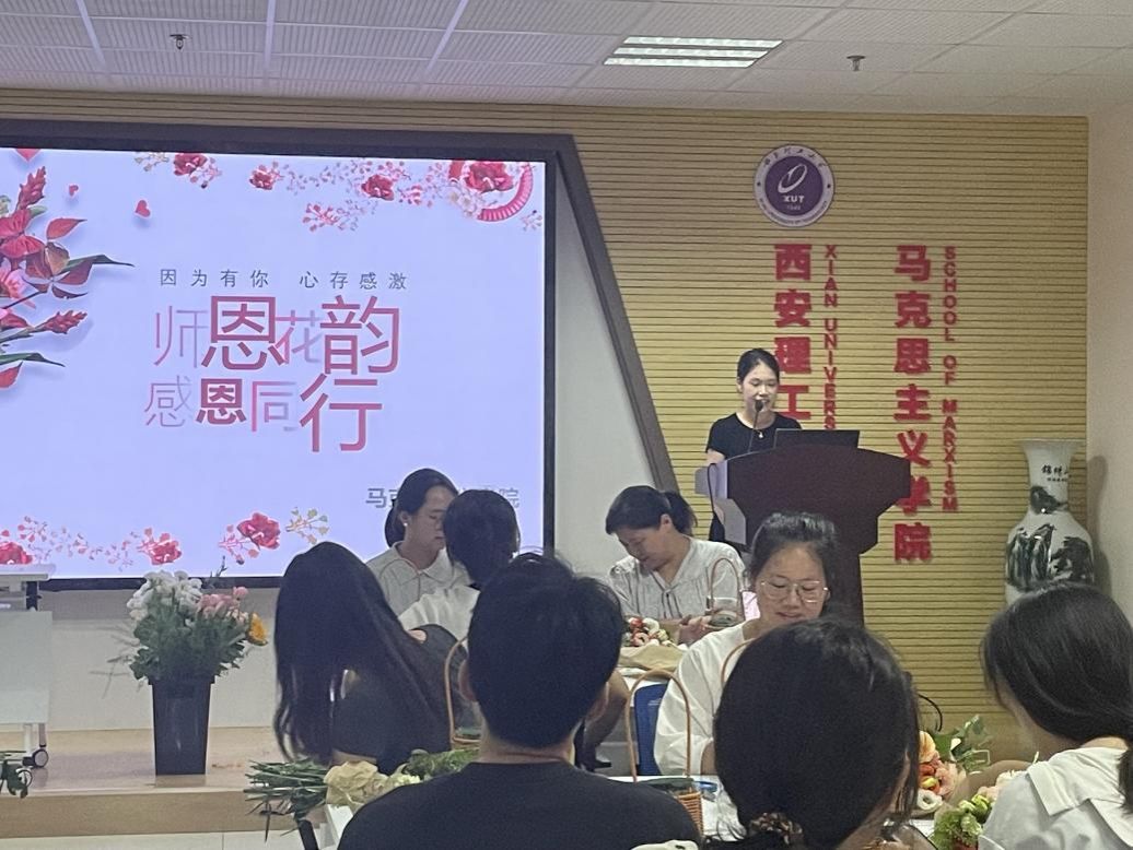 金秋送爽,丹桂飘香,在第40个教师节来临之际,9月6日下午,马克思主义公司党委组织师生欢聚综南楼911报告厅,以“师恩花韵 感恩同行”为主题,举办了一场别开生面的插花活动。公司研究生分会承办本次活动,公司部分教师、硕士研究生参加本次活动,活动由任卓欣同学主持。