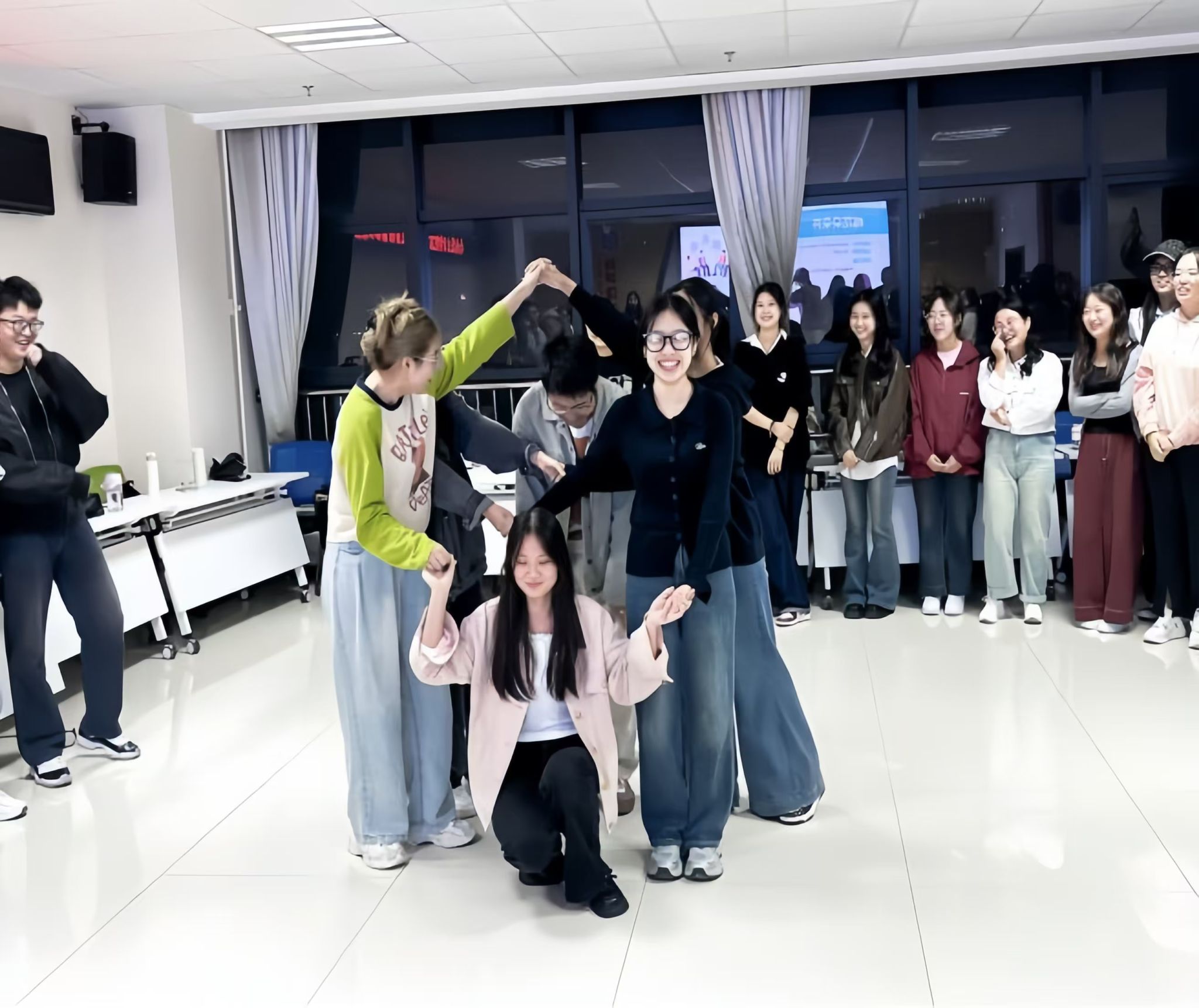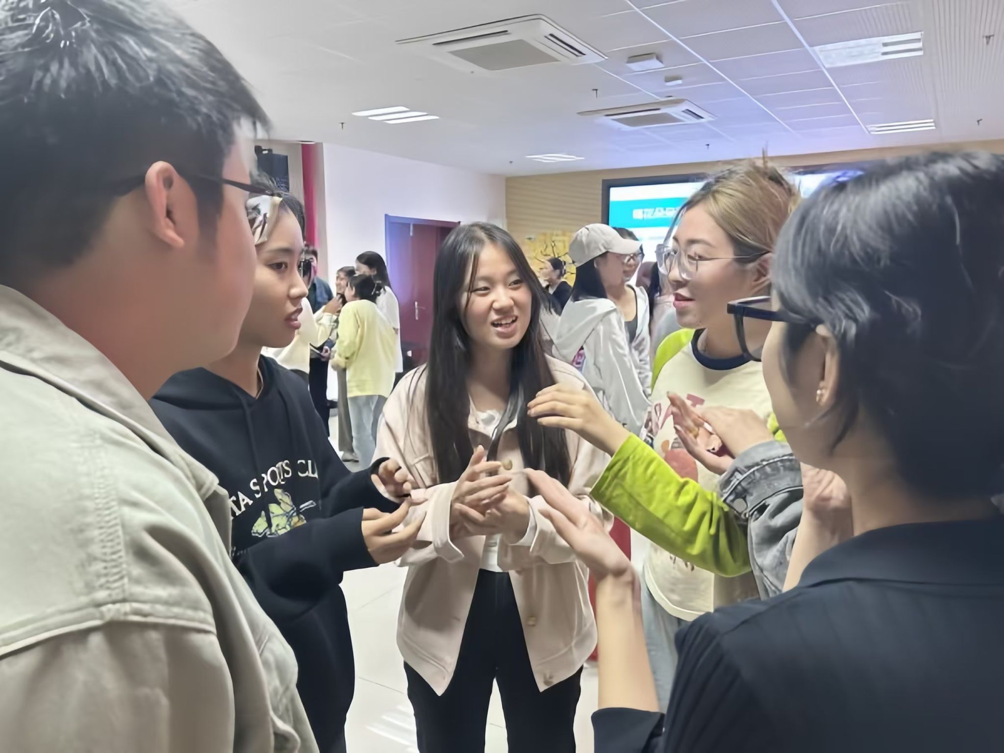 在同学们的期待中,“梅花花朵朵开”暖身活动拉开了本次团体心理辅导的序幕,同学们跟随音乐步伐,听着主持人给出的数字,迅速组队。之后进行了随机分组,大家共同思考本组队队名,口号和队伍展示造型,不仅锻炼了快速反应能力,更在欢笑中拉近了彼此的距离。紧接着,“滚雪球”的挑战,各小组成员围成一个圆圈,分别介绍自己的姓名、家乡和喜好,各组交流结束后,再派出一名代表,向全班同学介绍自己小组成员。同学们在进一步加深了解的同时,也找到了爱好相同的伙伴。而“齐心协力”的游戏将活动气氛推向顶峰。各小组集思广益、共同攻克难关,展现了集体的智慧与力量,进一步强化了团队凝聚力和归属感。