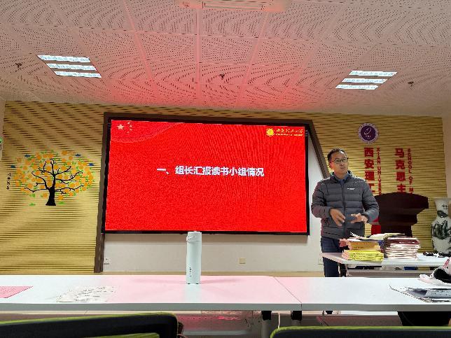 读书小组组长李运介绍了中国高等教育学会马克思主义研究分会的基本情况,回顾了小组的申报过程,分享了参加“首届马克思主义经典著作教学与研读指导学术研讨会”的经历,并介绍了小组的必读书目和其他考核要求,其他小组成员也分别就阅读安排和学业规划进行交流,纷纷表示要在认真读原著的基础上实现知、信、行的统一。