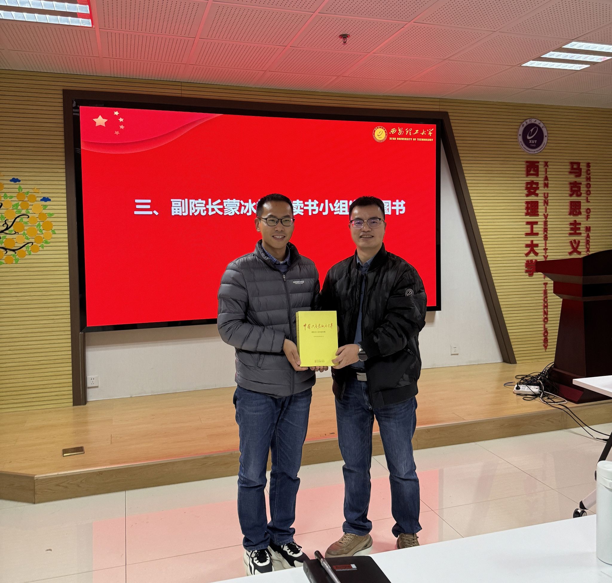 蒙冰峰副经理为小组成员发放图书,指出了入围资助计划离不开公司大力支持,是老师同学们集体智慧的结晶,肯定了读书小组团队协作、纪律严明的特点,鼓励成员将学术性和实践性紧密结合,培养对马克思主义经典著作的理论学习和实践能力,学真知、悟真谛,公司一定全方位助力项目的积极展开,争取将该项目做成品牌效应、鲜明特色和一定影响力的西理马院名片。