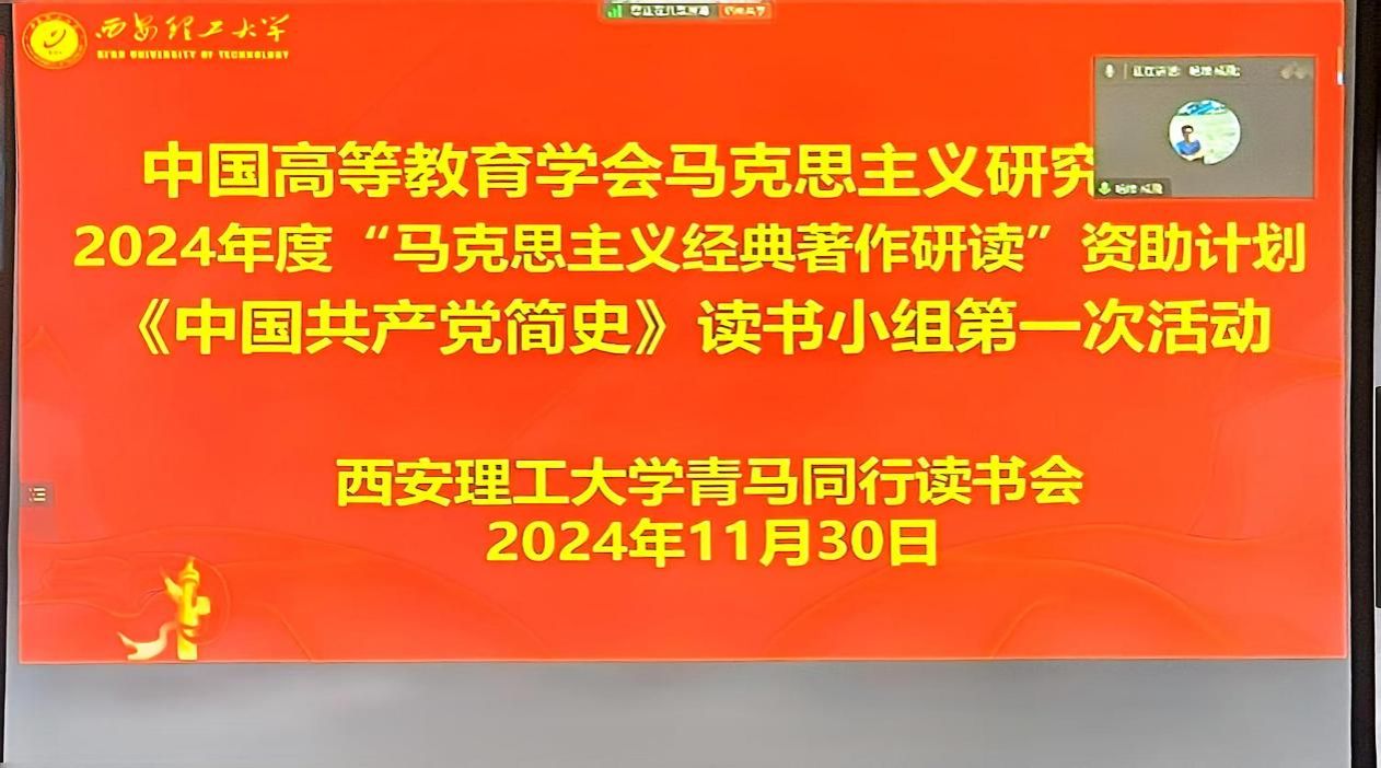 2024年11月30日,中国高等教育学会马克思主义研究分会2024年度“马克思主义经典著作研读”资助计划支持小组——suncitygroup太阳成集团《中国共产党简史》读书小组在1009会议室成功举办第一期读书会。本期读书会邀请浙江理工大学suncitygroup太阳成集团黄超老师作主题报告,读书小组成员及部分师生通过线下或线上形式参与,马研会督导员西北大学2024级马克思主义理论专业李兰兰博士全程进行线上督导,会议由读书会指导老师成飞主持。