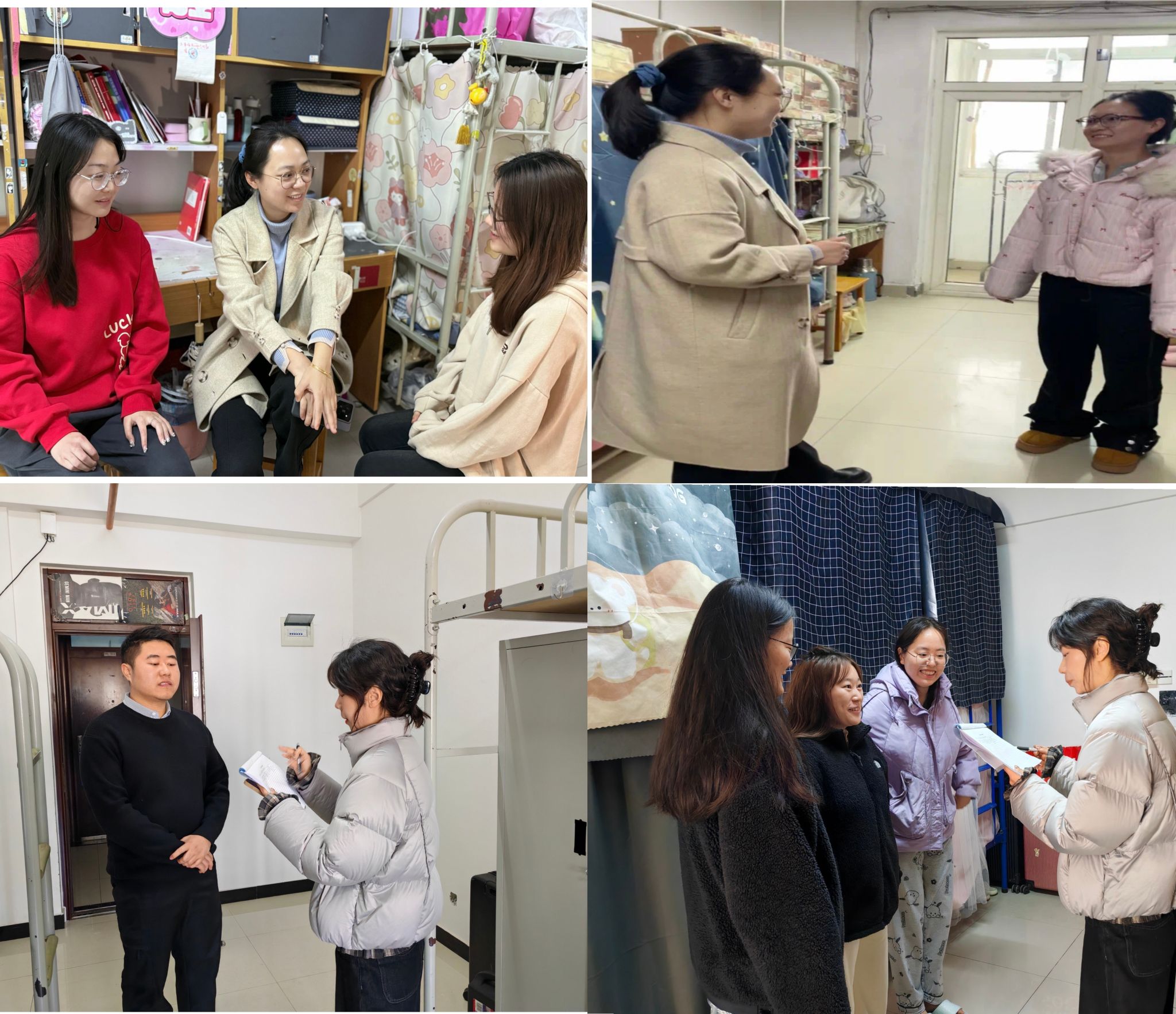 2月22日-28日,辅导员队伍深入开展安全稳定风险排查工作,全面了解各类员工思想、学习和生活情况,及时展开隐患排查、登记和整治;围绕以往各种典型案例和公司当前存在的个别问题,有组织地开展会商和研讨,明确了工作思路,制定了工作方案。同时,各年级辅导员深入员工宿舍,了解新学期员工生活和学习中存在的问题,排查宿舍安全隐患,并就宿舍安全进行了重点强调。辅导员老师提醒同学们要加强身体锻炼,提高自身免疫力,抵御换季时节可能出现的流行性感冒等疾病;并要求同学们做好卫生值日,定期打扫宿舍卫生,常通风、勤消毒,注意保持宿舍内部整洁,为新学期的学习生活营造温馨整洁舒适的宿舍环境。