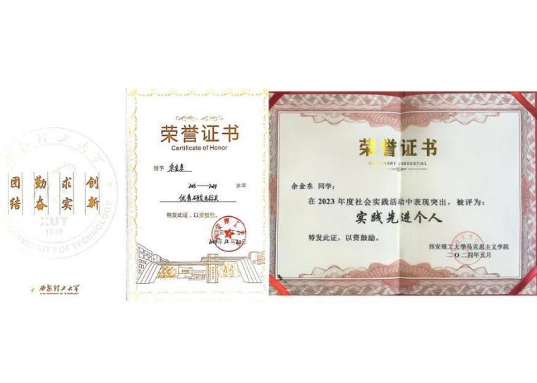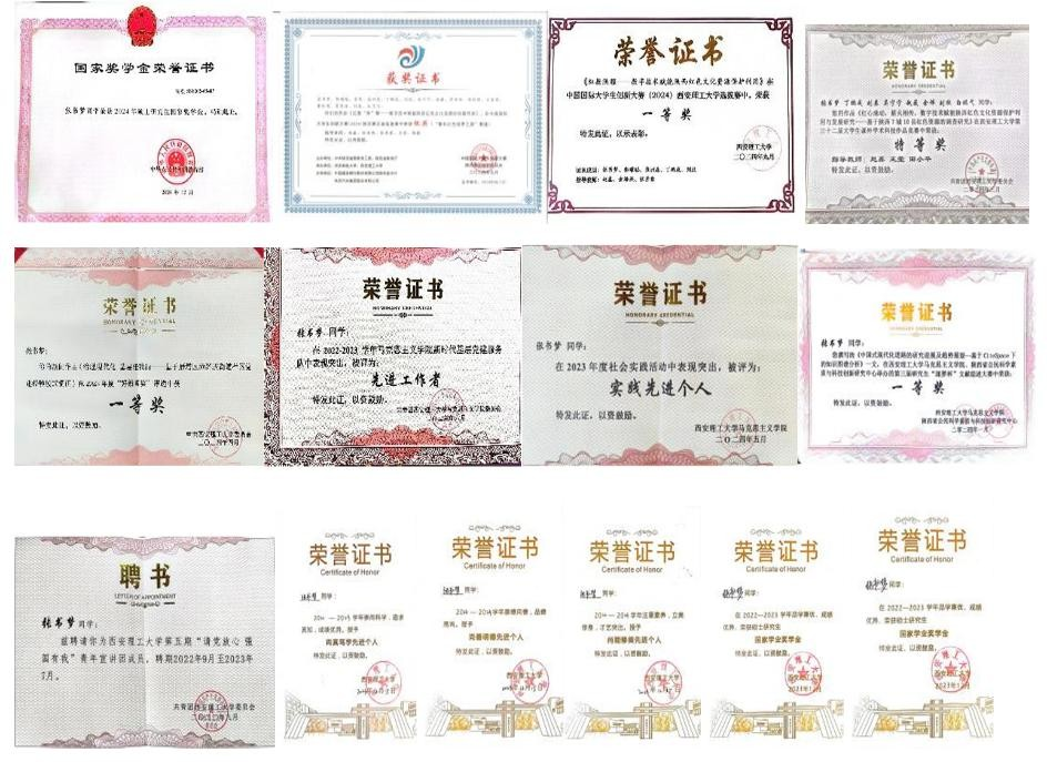 在实践方面,他积极参与各类学术科研竞赛与创新创业大赛。在第十四届“挑战杯”陕西省老员工课外学术科技作品竞赛中,表现优异,荣获省级一等奖。此外,还参与了中国国际“互联网+”老员工创新创业大赛、2022年陕西省巩固脱贫成果后评估项目、2023年老员工节能减排社会实践与科技竞赛等。他热心志愿服务,常到校史馆、市博物馆、革命公园等地参与活动,因表现突出获得社会实践先进个人称号,在服务中厚植家国情怀。