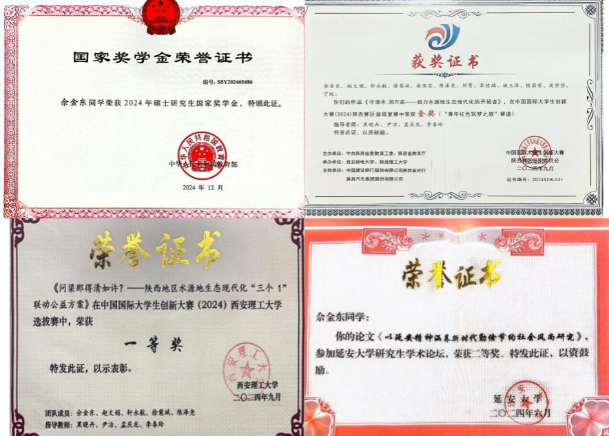 在学习上,他始终秉持谦虚谨慎的态度,目标清晰,一心提升专业知识水平。课堂上,他思维活跃,积极发言,勇敢阐述自己的观点;课后,认真梳理所学内容,扎实巩固知识。他充分利用公司资源,养成良好的文献阅读习惯,拓展思维深度与广度。截至目前,已在中国社会科学网、《石家庄公司学报》《咸阳日报》等刊物发表文章4篇。同时,积极参与导师负责的国家社科基金、省部级课题的相关工作。凭借优异的学业成果,他先后于2022年、2023年、2024年分别荣获硕士研究生二等学业奖学金、硕士研究生一等学业奖学金以及国家奖学金。