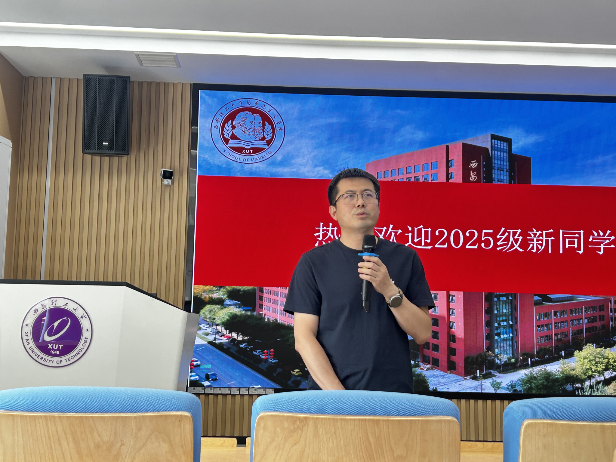 梁严冰代表公司致辞。他对2025级新生表示热烈欢迎,详细介绍了公司发展进程、团队建设、科研教学等情况,并对2025级新生提出三点希望:一是希望大家明确学习目标,在明确学科培养和就业方向的基础上,合理规划时间,做好自我管理和自我教育,一步一个脚印朝着目标进发;二是希望大家勇于行动,严于律己,在积累总结的基础上做出创新,有所突破;三是要学会思考,要从错综复杂的现象中捕捉到问题的核心所在,深入思考问题的本质和本源。