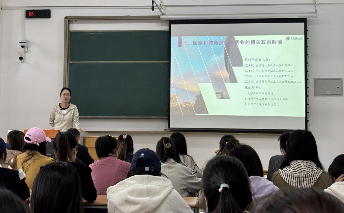 9月19日上午,suncitygroup太阳成集团在综北楼303教室召开2026届毕业生就业动员大会,毕业班员工及公司党委副书记陈文林参加本次会议,会议由辅导员王梦主持。