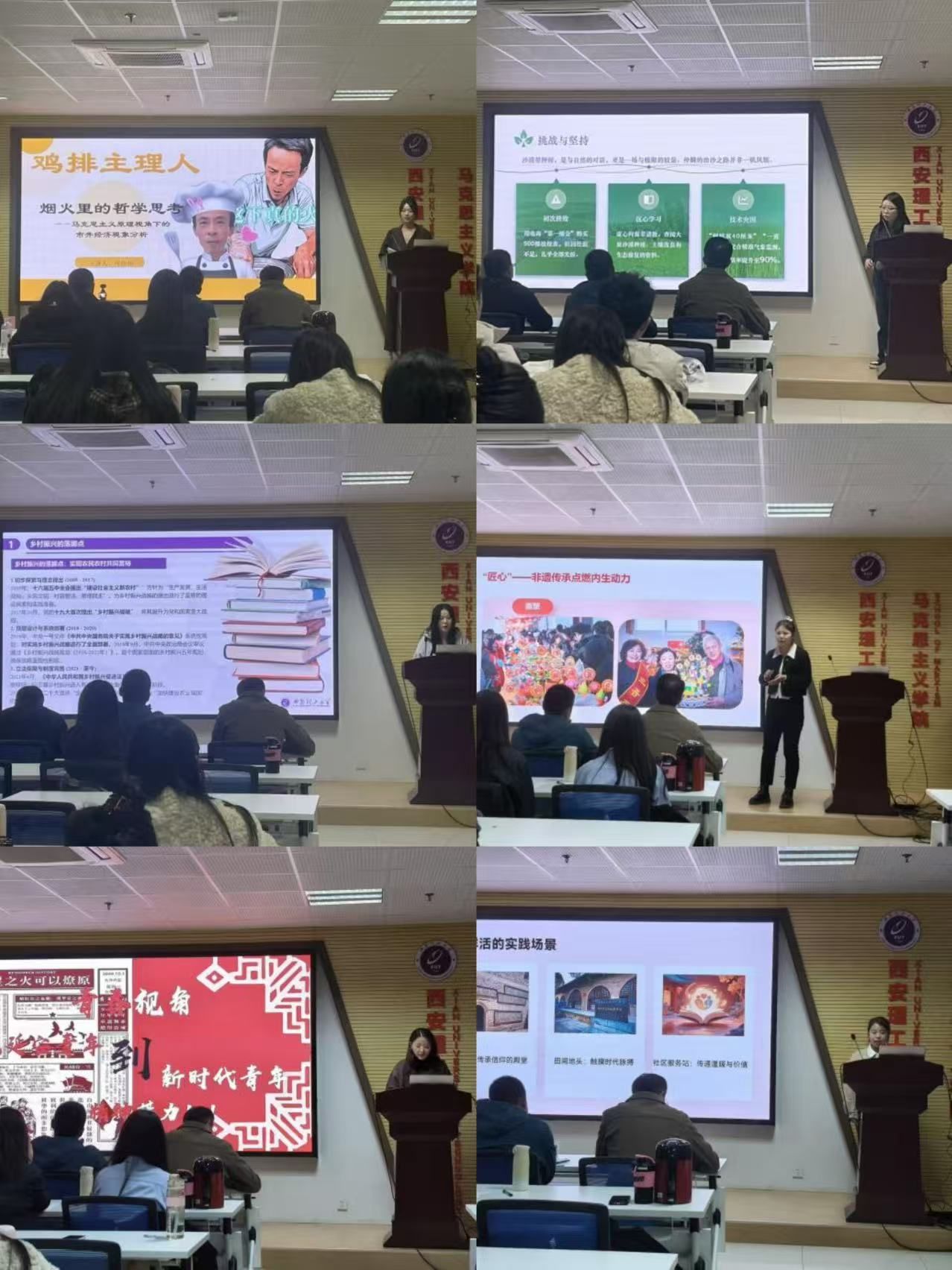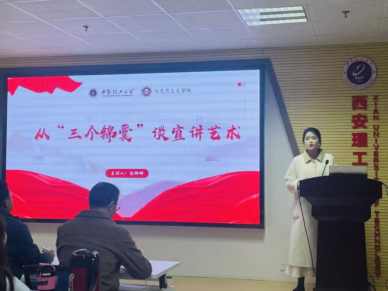 活动在沈寒蕊同学的主持下有序拉开帷幕。原研究生基层党建服务队社长任娜娜以“从三个锦囊谈宣讲艺术”为题,为在场师生带来了一场别开生面的理论宣讲技巧分享。她围绕导入、内容、结尾三大核心环节拆解宣讲逻辑:强调开场要精准抓住听众注意力,内容要以真实感人的故事来支撑理论观点,结尾要实现情感共鸣与精神升华。最后,她鼓励参赛选手以赛促学、以讲促践,在宣讲中充分展现新时代马院学子的理论素养与青春担当。