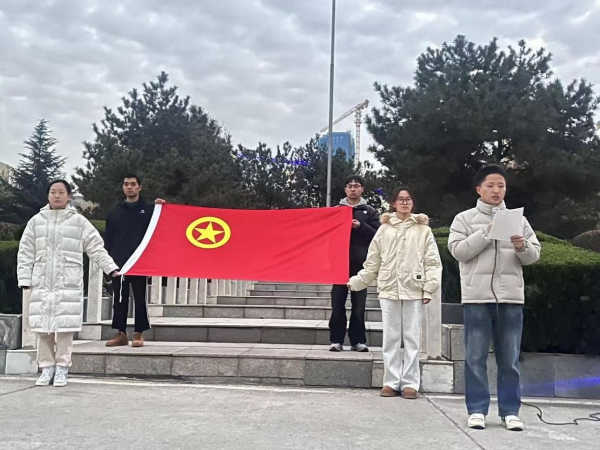 征程万里风正劲,使命千钧再奋蹄。为深入学习领会党的二十届四中全会的重要精神,引导广大青年学子深刻认识国家发展的宏伟蓝图与战略部署,自觉将个人理想融入强国建设、民族复兴的伟大征程,激发爱国热情,凝聚奋斗力量,12月2日早上7点,公司在曲江校区隆重举行“践行全会精神、续写强国华章”主题升旗仪式。全体团员参与本次活动,升旗仪式由公司研251101班团支部同学图尔肯娜依·外力同学主持。
